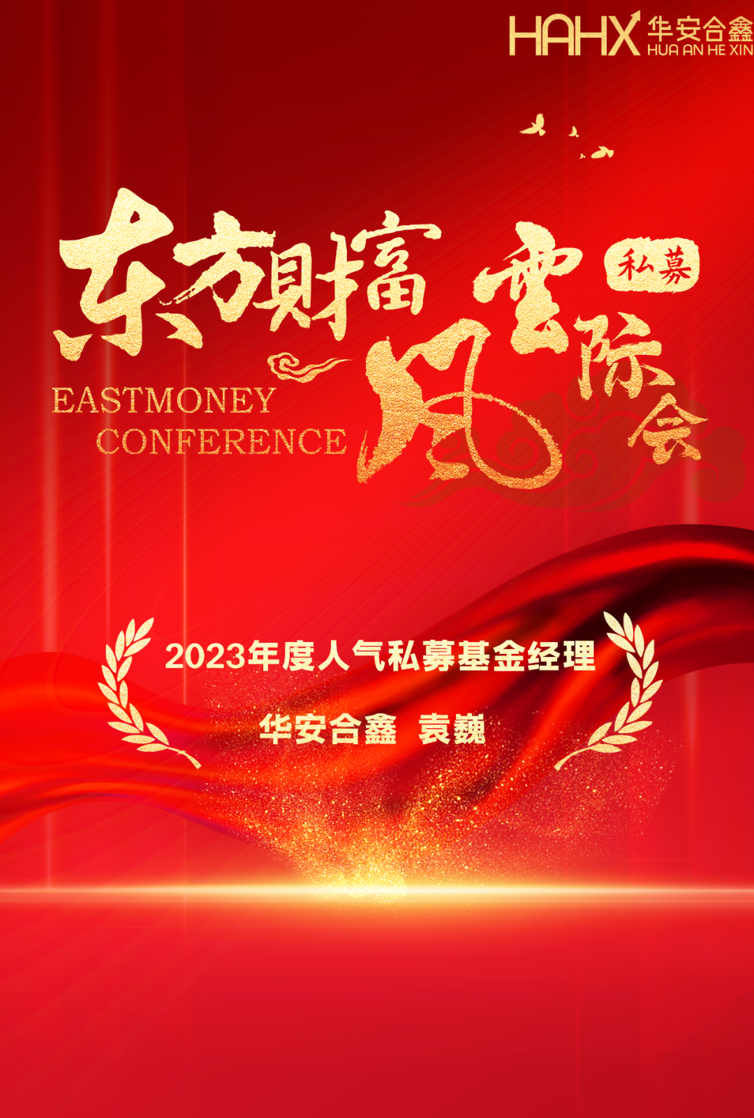 2023年12月17日,由东方财富网主办的“2023东方财富私募风云际会”论坛于云南昆明隆重举行。论坛以“高质量发展,新业态前瞻”为主题,邀请了诸多知名私募机构人士和业内知名人士开展主题演讲和圆桌对话,共话资本市场动态,共谋资管行业发展。同期举办了金融行业年度大榜“2023东方财富私募风云榜”颁奖典礼,逾百家私募、信托及期货等获奖机构出席盛典,共同揭晓2023年度东方财富私募风云榜获奖榜单。华安合鑫创始人、投资总监袁巍先生凭借长期稳健的优秀业绩,荣获“2023东方财富私募风云榜·2023年度人气私募基金经理”奖项。